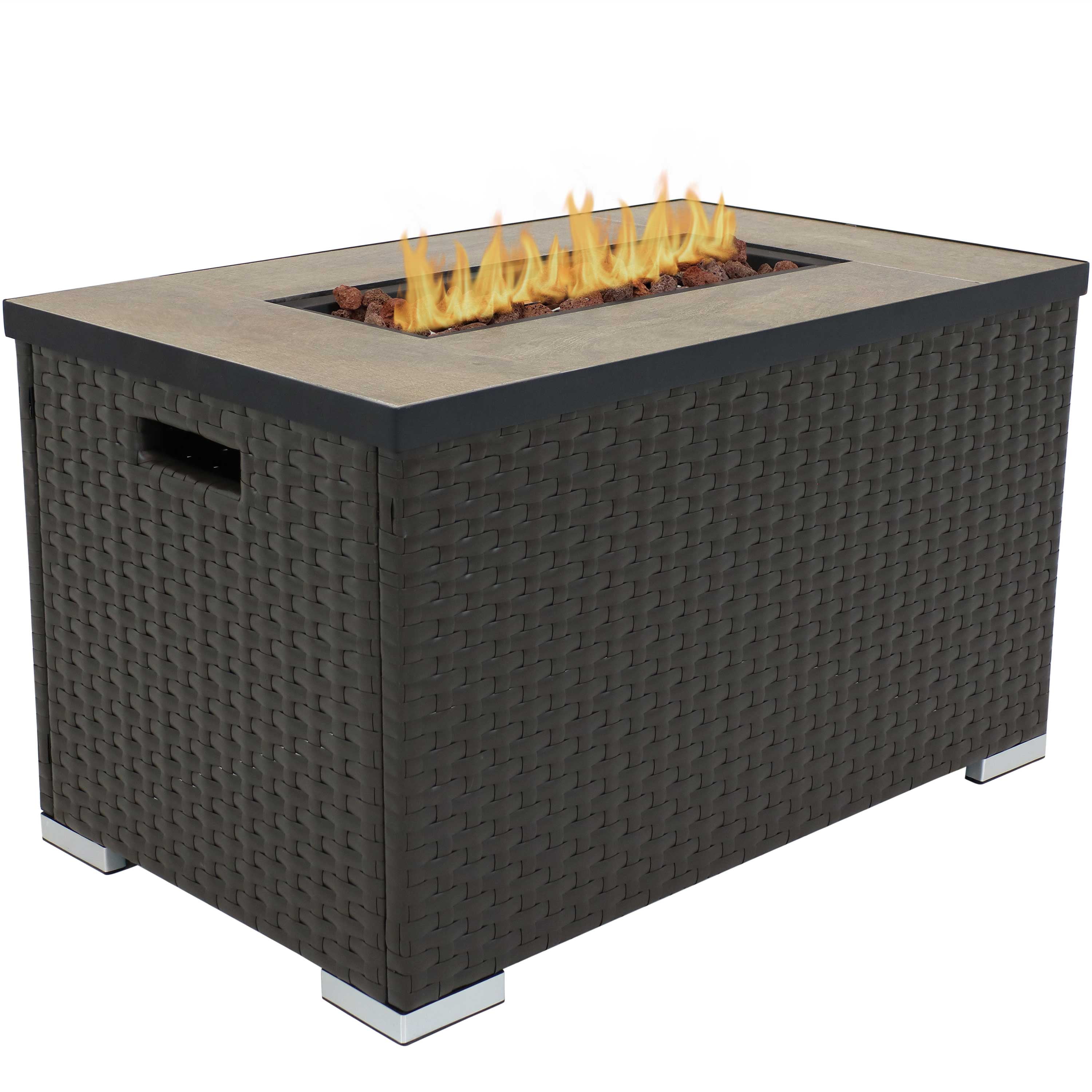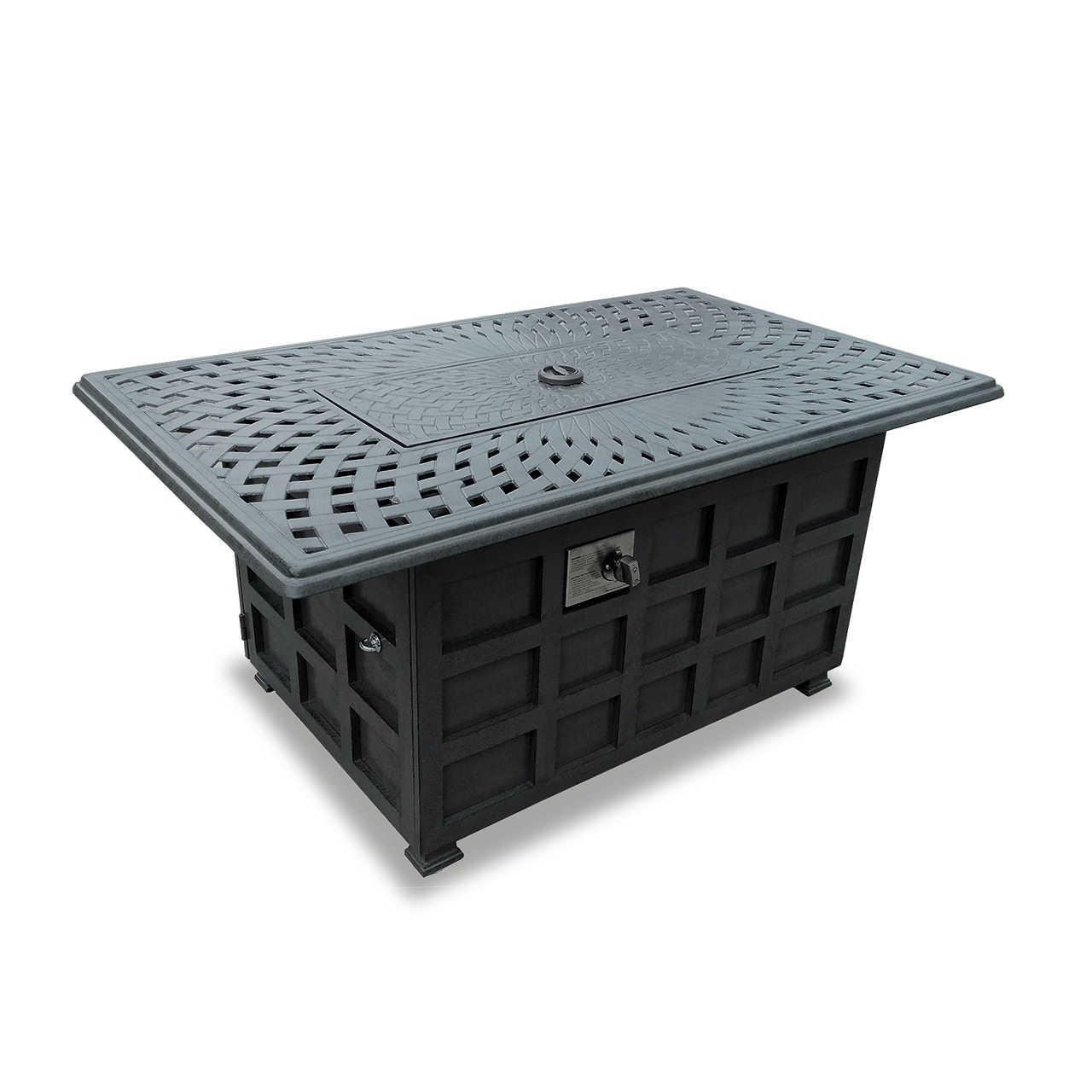 Round , rectangle and square. A gas fire pit table is an outdoor patio table that provides heat through a burner and adjustable flame. 55,000 btu fire table (propane tank not included) powder coated aluminum frames The height of the fire pit is 22 the burner Hn outdoor brecksville propane gas fire pit.